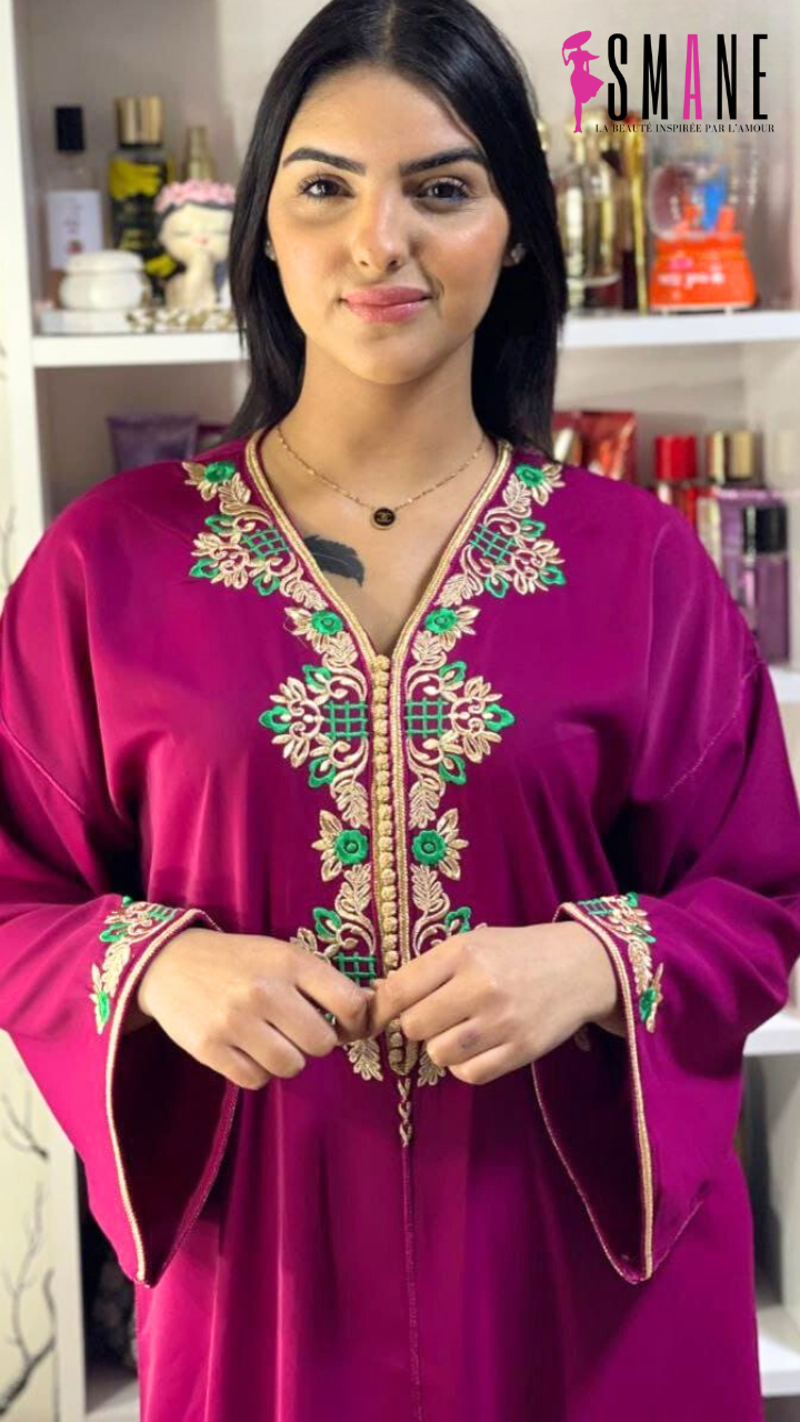 الألوان الزاهية في هذا القفطان تمنحكِ إشراقة وجمالًا يناسب جميع الاحتفالات، من الأعراس إلى المناسبات العائلية، لتكوني دائمًا محط الأنظار.